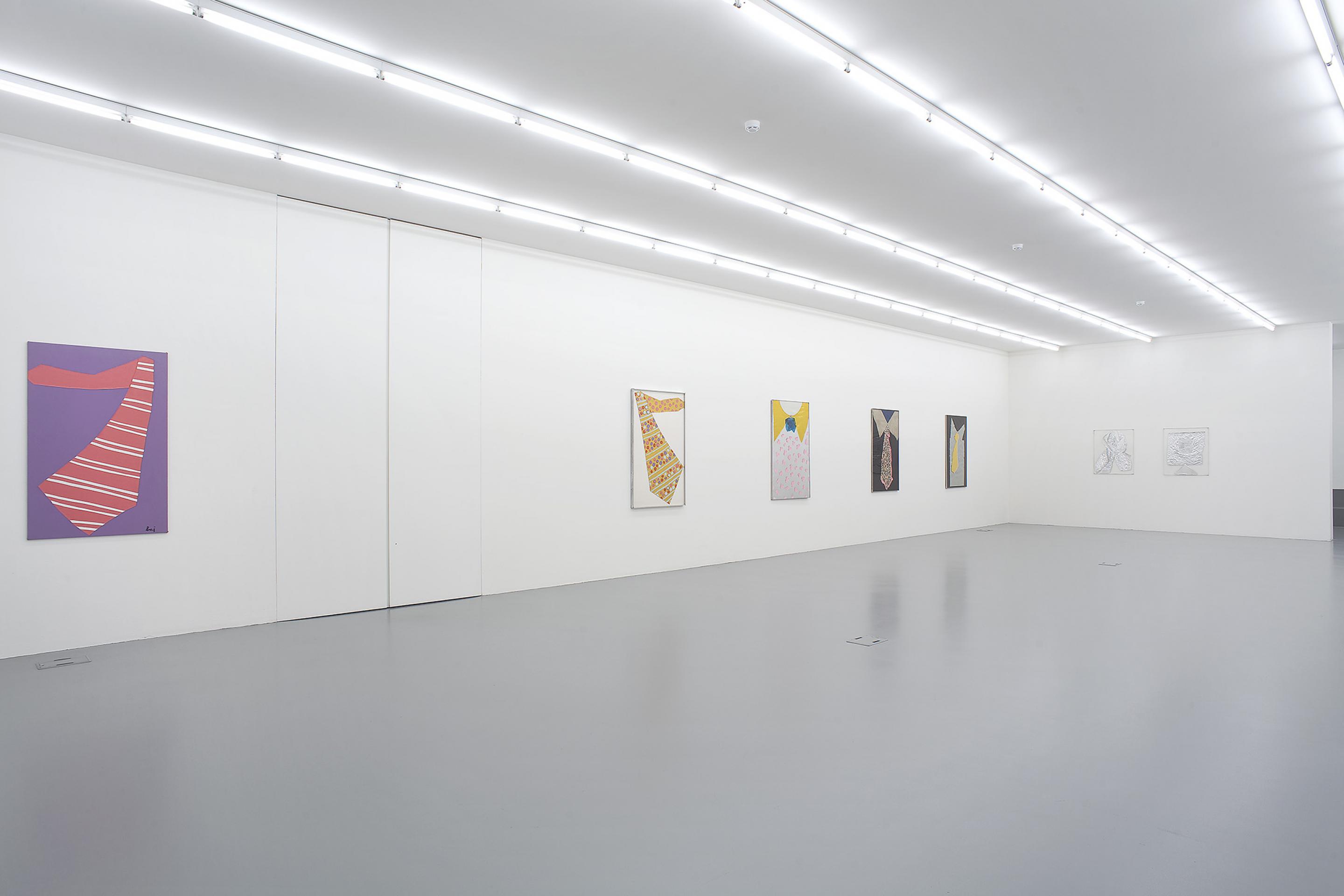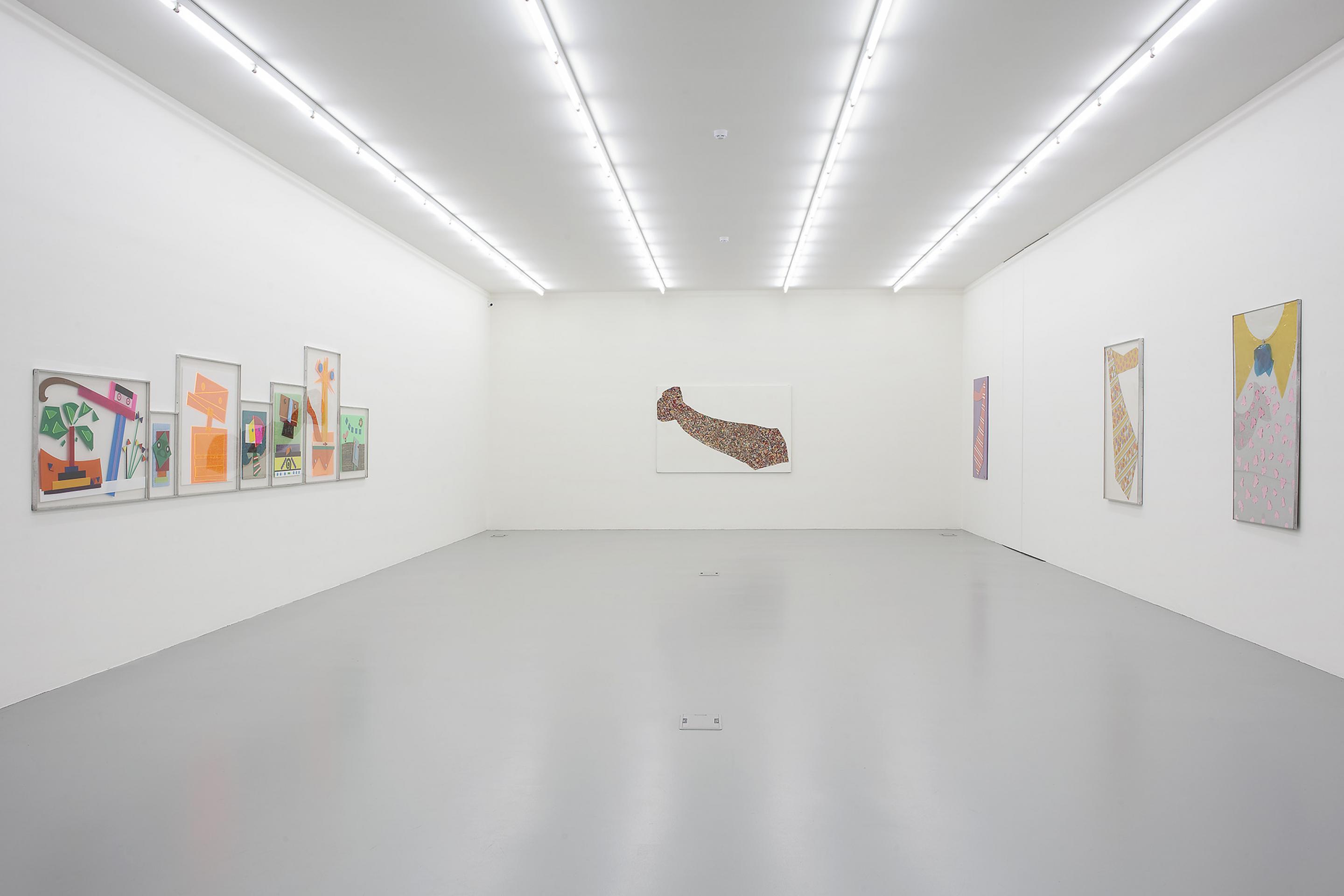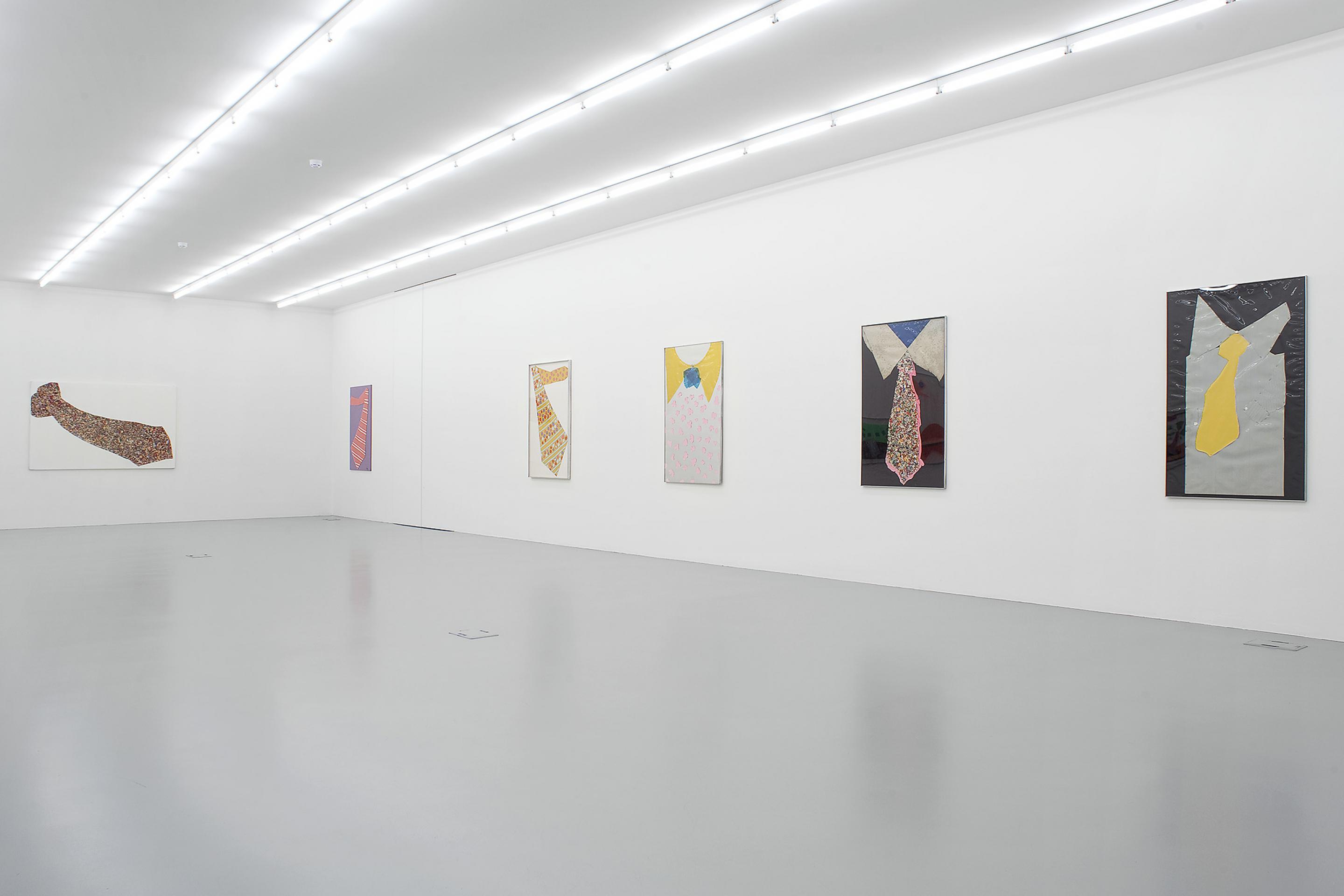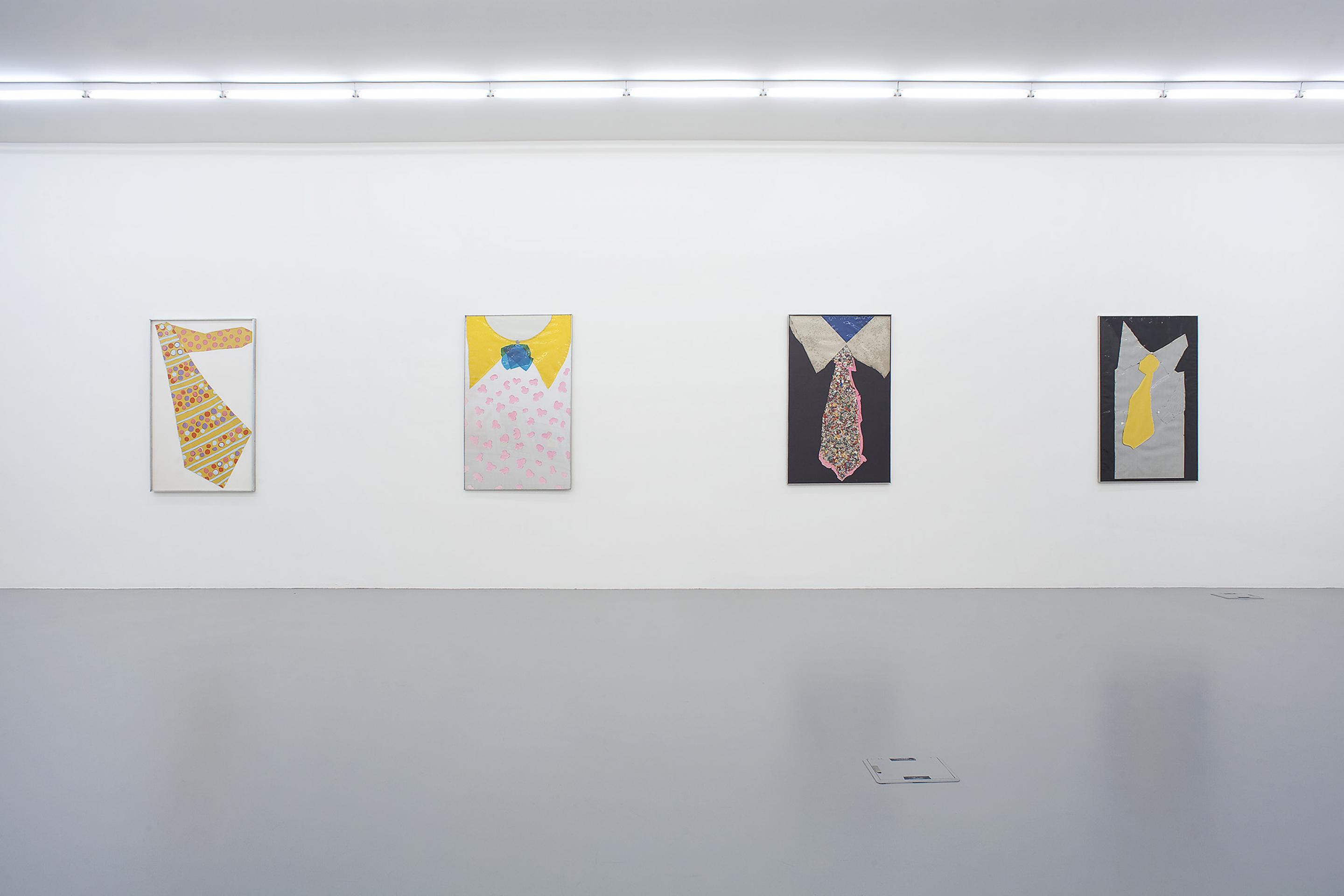 He cut, assembled and superimposed onto the entire spectrum that was offered by these new industrial materials: PVC, lego, polyethylene, polyester – all this gave birth to numberless colourful characters, landscapes and his ultimate series of loud and varicoloured neckties.