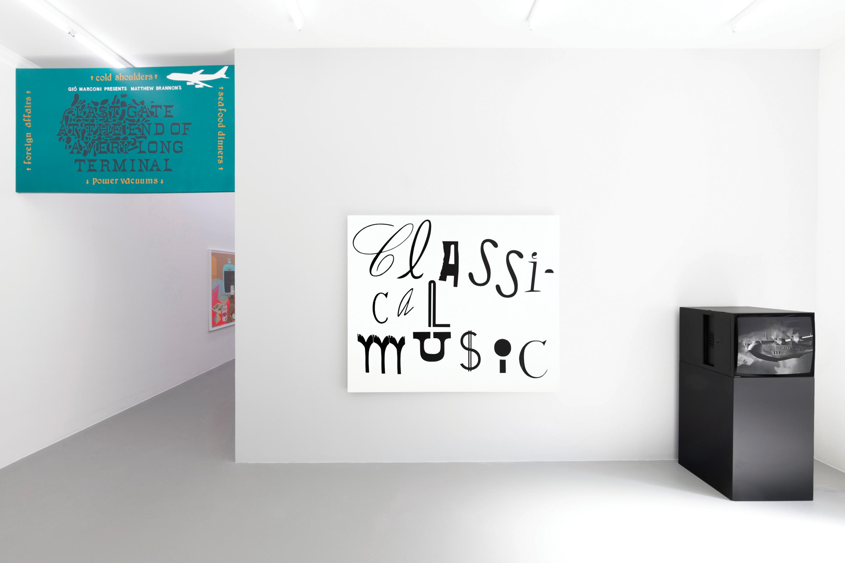 Matthew Brannon, Installation view, Cold Shoulders / Foreign Affairs / Seafood Dinners / Pregnant Décor / Power Vacuums / and The Last Gate at the End of a Long Terminal, Gió Marconi, 2021