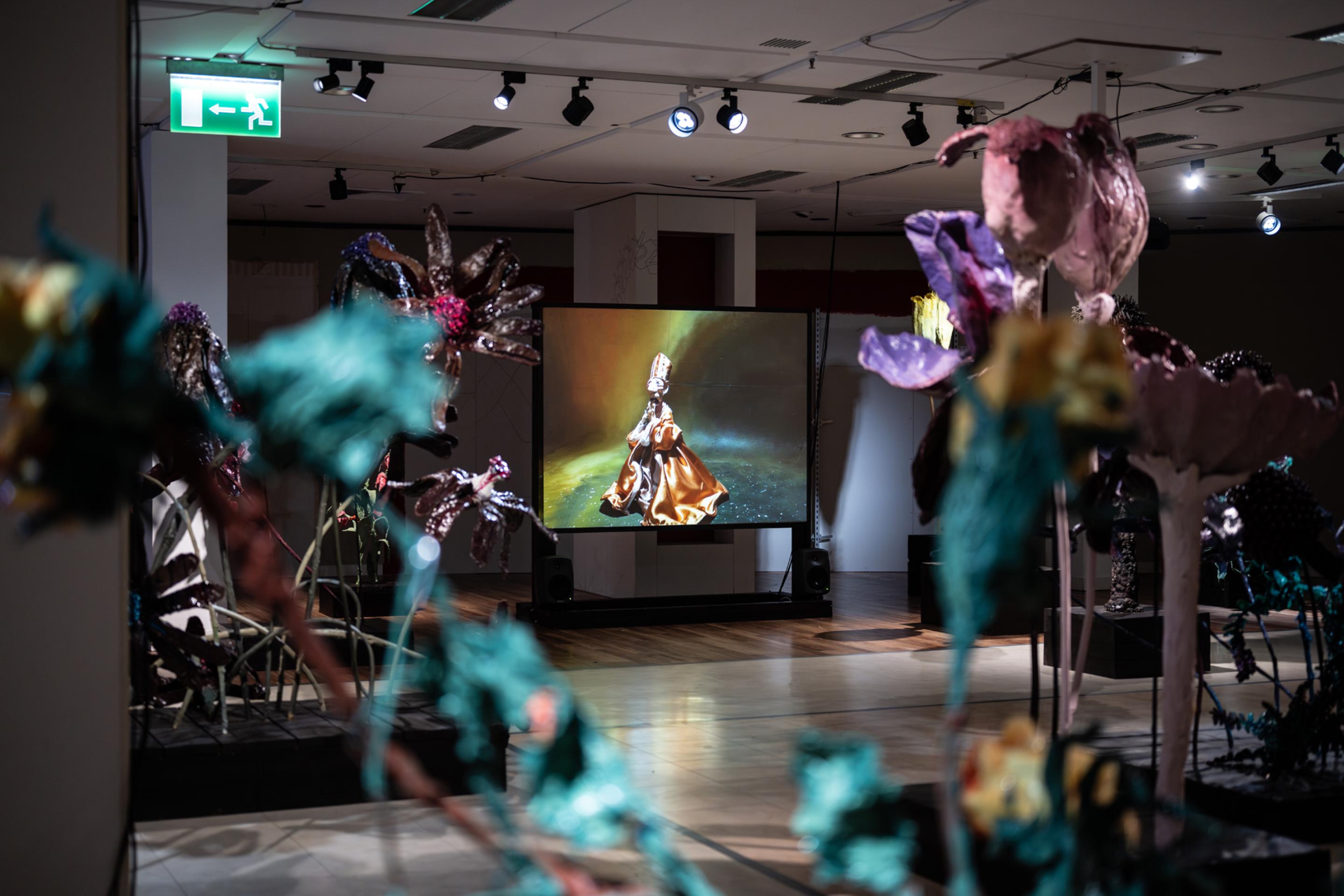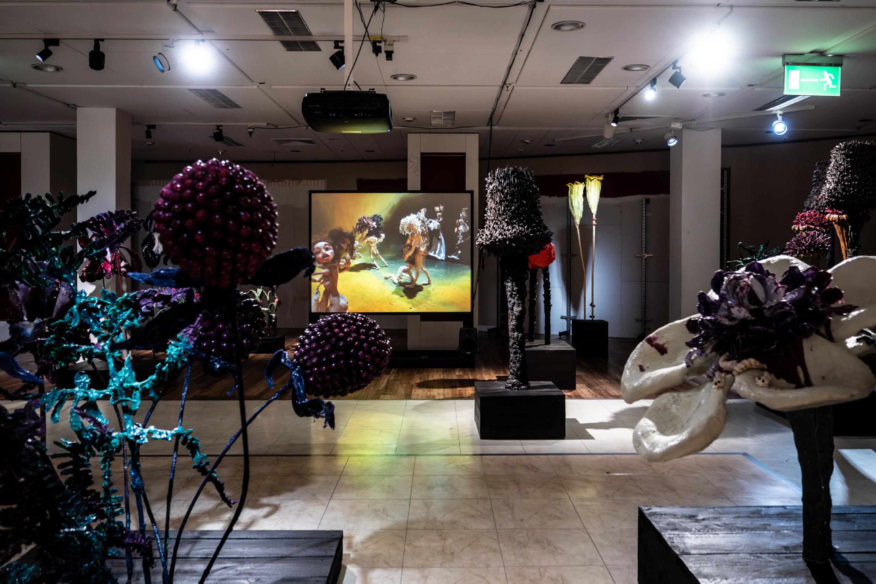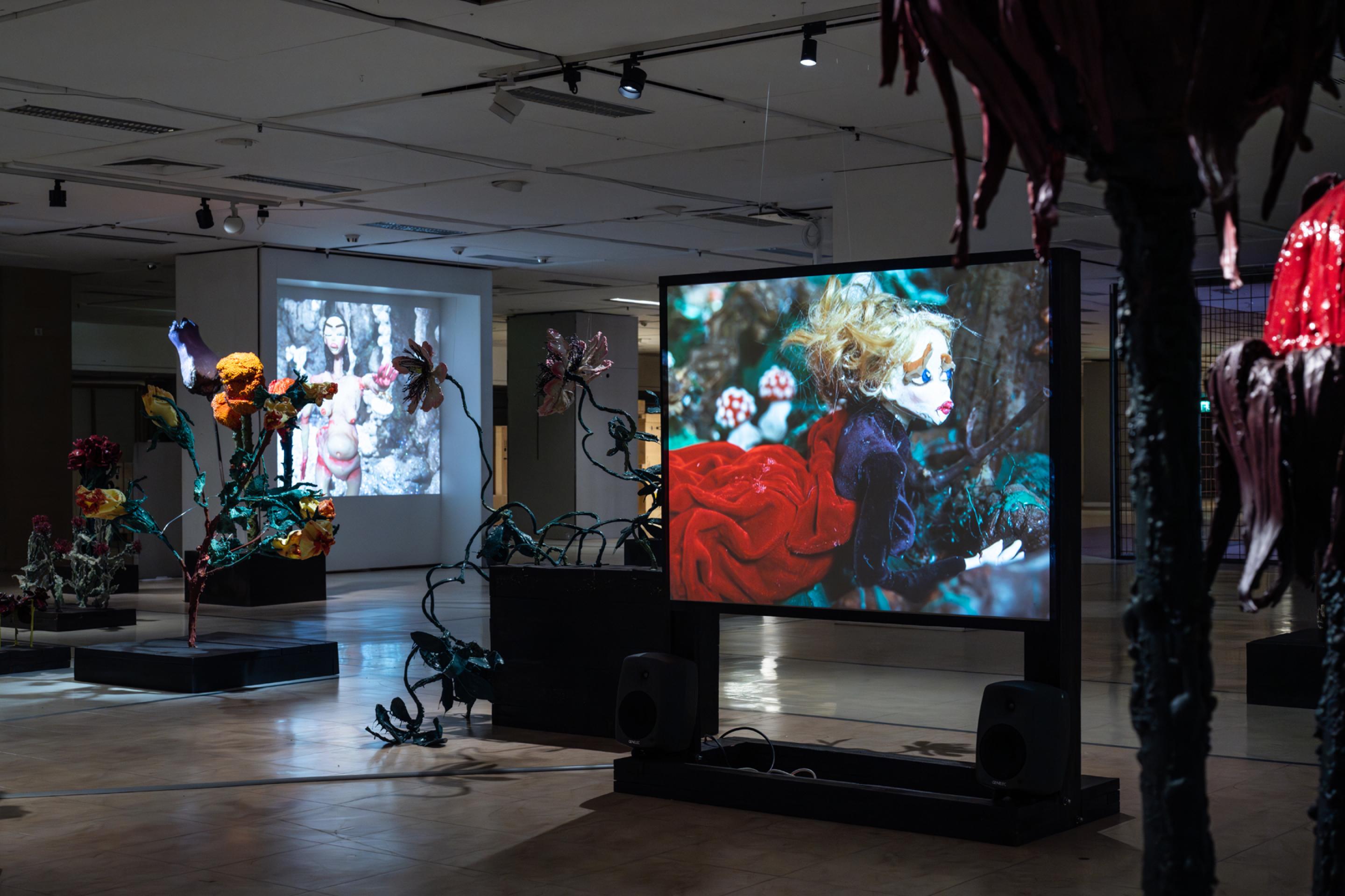 Nathalie Djurberg & Hans Berg, The Experiment, Installation view, Sammlung Goetz, Munich, 2023. Photo: Dominik Dittberner