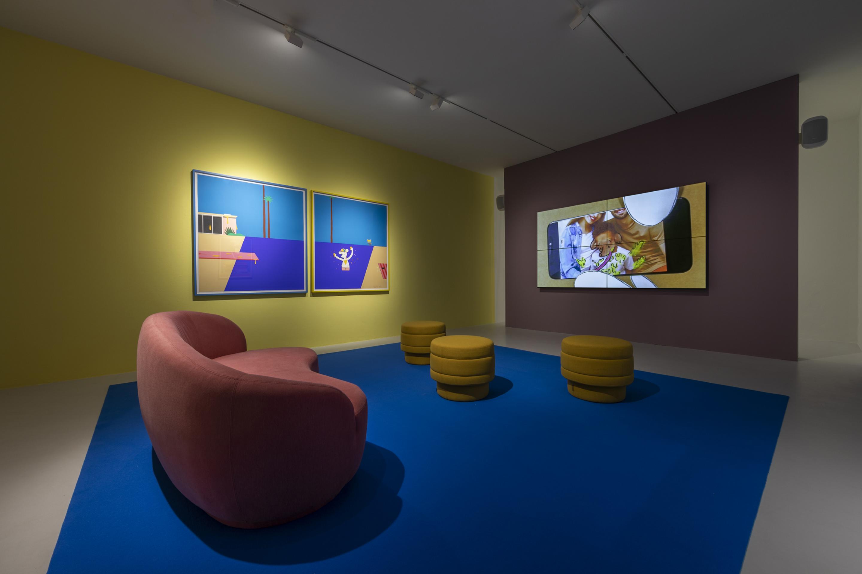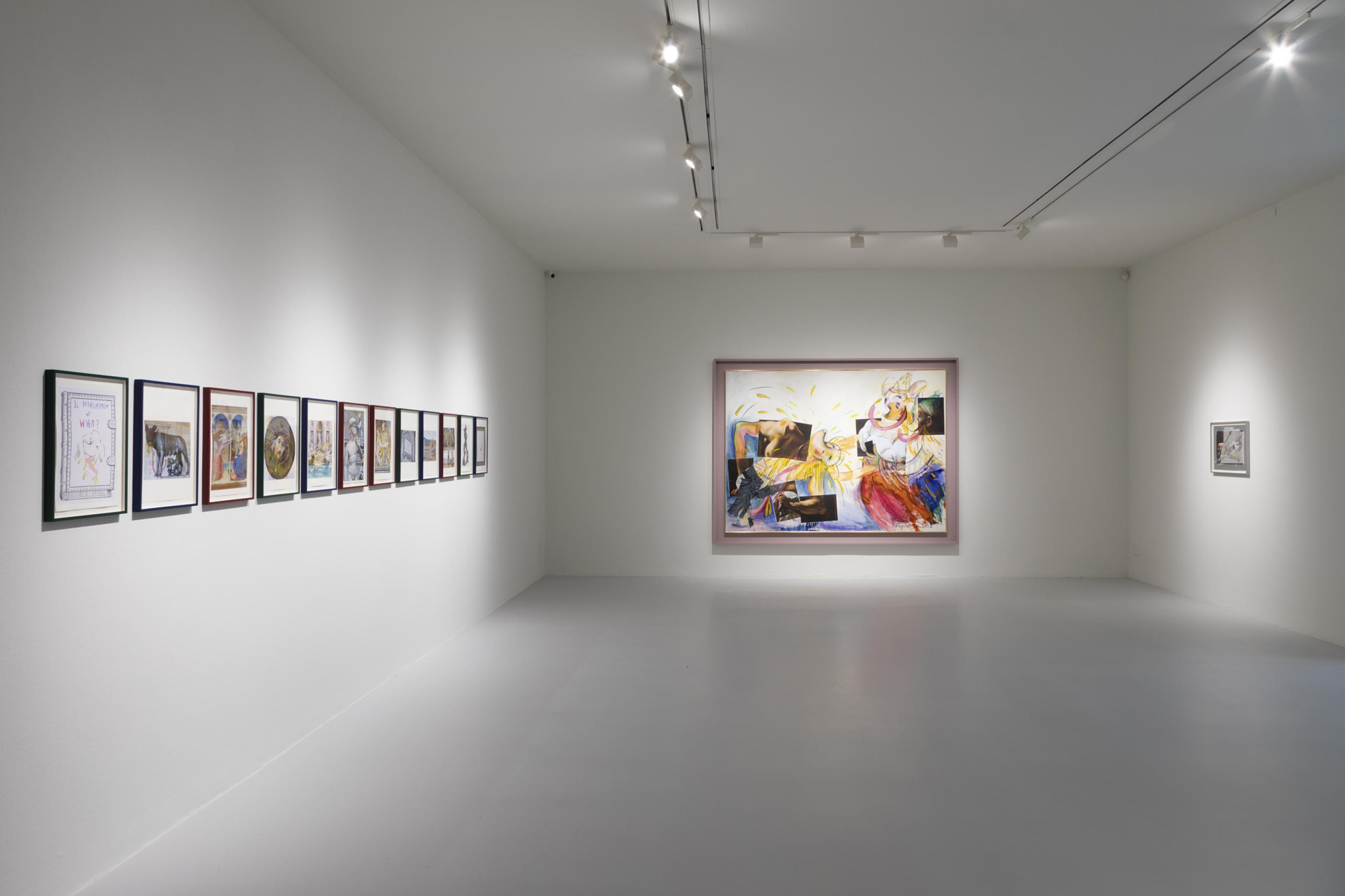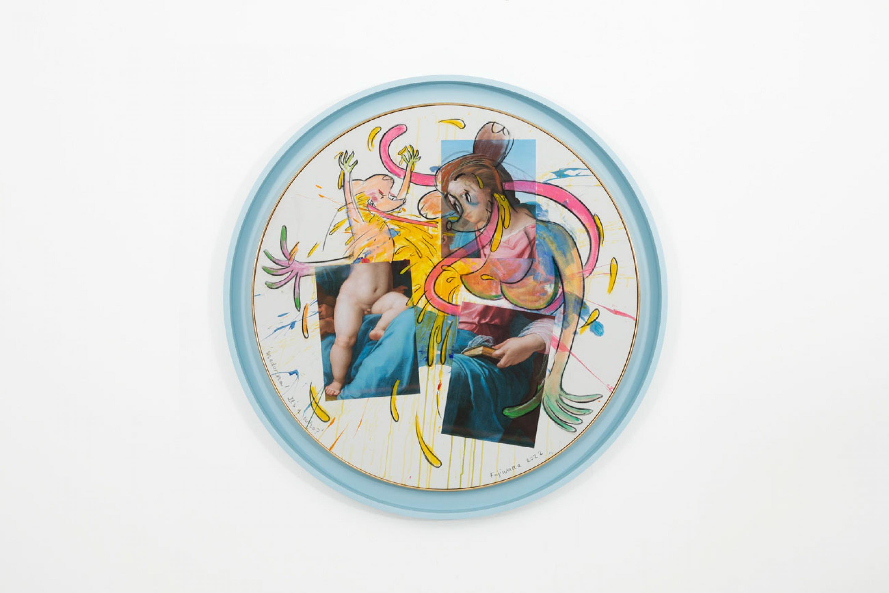 In this exhibition at the gallery, Fujiwara will present a body of new works that explore several of the main topics of Who the Baer from gender identity and nationalism to online dating and cultural appropriation through a series of new ‘flat works’ on canvas, paper and screen-based animations. Using the metaphor of flatness to underscore Who the Baer’s eternal status as an image, a large body of works in this exhibition remix art historical icons, simultaneously exalting and emptying them of content as they are plunged into the bizarre, megalomanic cartoon world of Who. The exhibition culminates in a specially conceived site-specific room of works from the Italian cultural patrimony which, seen through the eyes of a cartoon character, cast a searing yet humorous eye on national identity through its most cherished symbols.