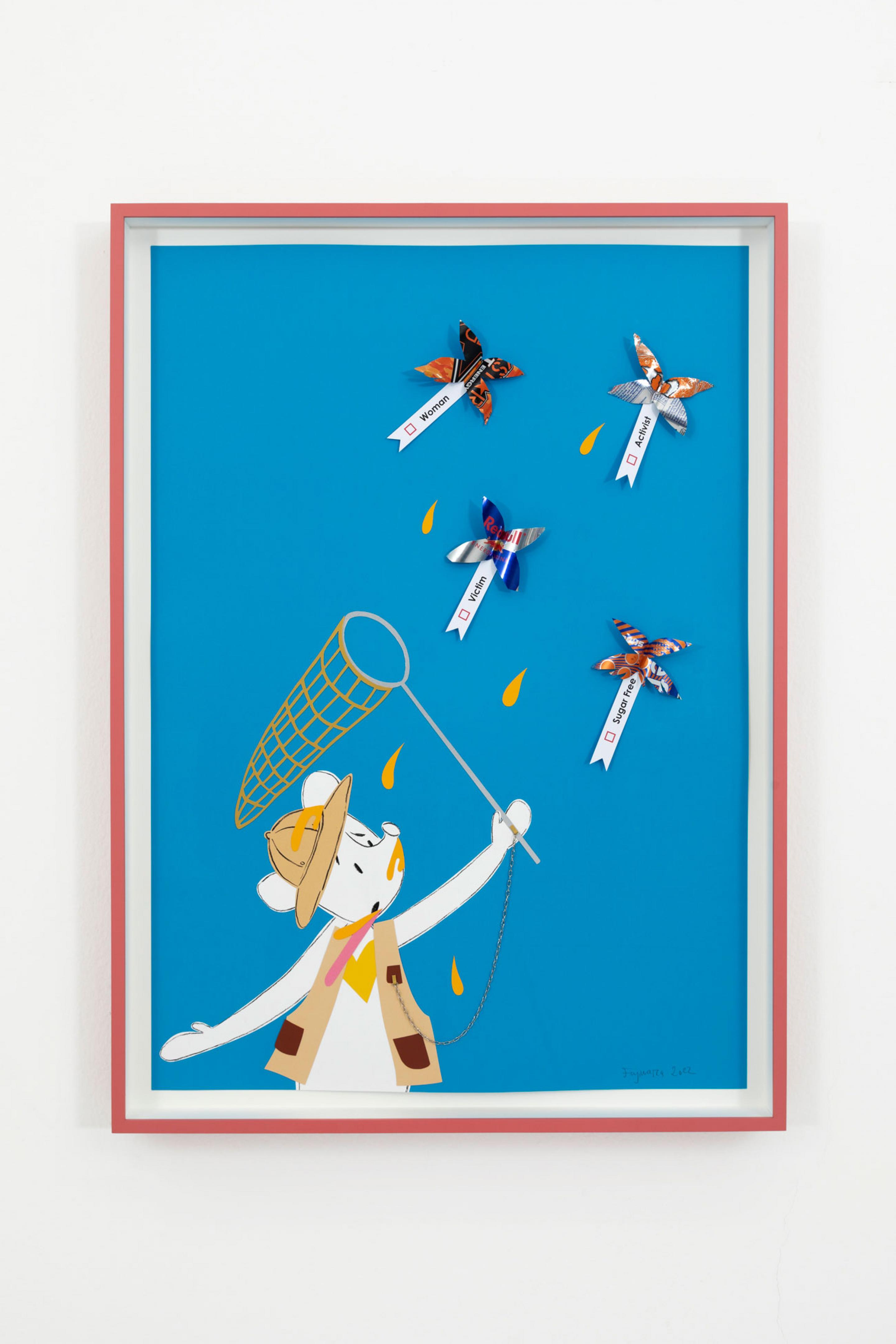 In questa mostra in galleria, Fujiwara presenterà un corpus di nuovi lavori che esplorano molti dei temi principali di Who the Baer, dall'identità di genere e il nazionalismo, agli appuntamenti online e all'appropriazione culturale attraverso una serie di nuove "opere piatte" su tela, carta e animazioni screen-based. Usando la metafora della piattezza per sottolineare l'eterno status di Who the Baer come immagine, un ampio corpus di opere all’interno dell’esposizione mescola icone storiche dell'arte, simultaneamente esaltandole e svuotandole di contenuto mentre vengono immerse nel bizzarro e megalomane mondo dei cartoni animati di Who. La mostra culmina in una sala site-specific dedicata alle opere del patrimonio culturale italiano che, viste attraverso gli occhi di un personaggio dei cartoni animati, gettano uno sguardo pungente e umoristico sull'identità nazionale attraverso i suoi simboli più cari.