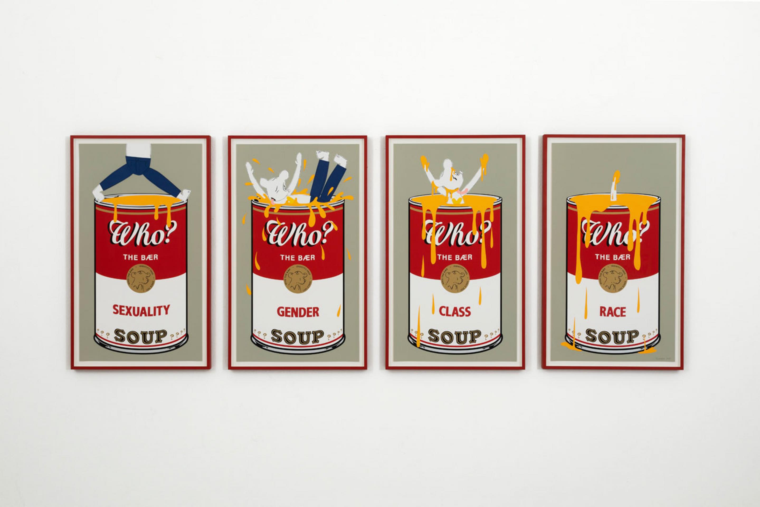 Who the Baer è stato sviluppato dall'artista durante il primo lockdown pandemico come "risposta dadaista a un mondo sempre più assurdo e incomprensibile". Di fronte alle questioni apparentemente irrisolvibili sollevate dalle proteste globali e dalla dissoluzione delle nostre tradizionali strutture identitarie, Fujiwara ha creato un avatar sotto forma di un personaggio identity-free dei cartoni animati chiamato Who, un orso bianco e peloso con un cuore d'oro e una lingua incredibilmente lunga. Who, come è affettuosamente conosciutə, apparentemente non ha razza, genere, sessualità e nemmeno un disegno chiaro; solo una cosa è chiara: che è un'immagine che si muove attraverso un mondo di altre immagini, e come tali ha la capacità unica di cambiare forma e ricoprire qualsiasi identità desideri. Ma Who troverà mai un sé vero e autentico? In effetti, un personaggio dei cartoni animati vuole davvero essere autentico quando potrebbe solo semplicemente sembrare autentico?